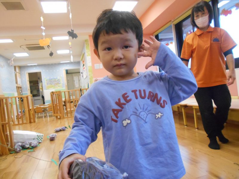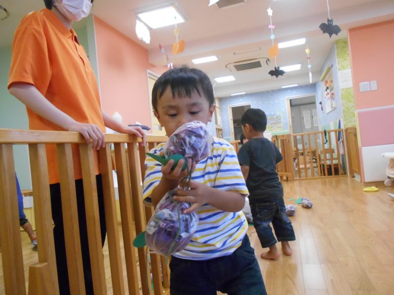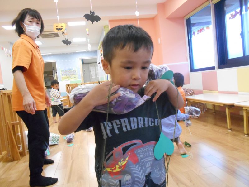 先々週、お芋堀の準備で新聞紙にたくさんの絵の具塗りをした活動を紹介させていただきましたが、