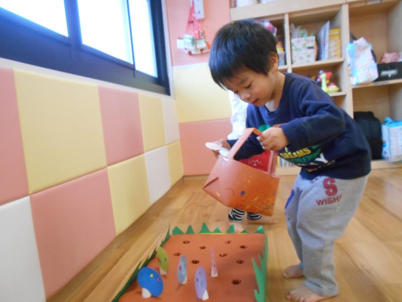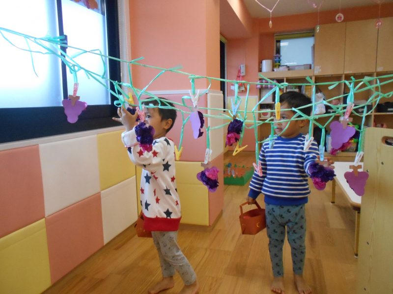 保育園中に、ブドウ・りんご・柿・キノコを実らせ、セッティング完了?