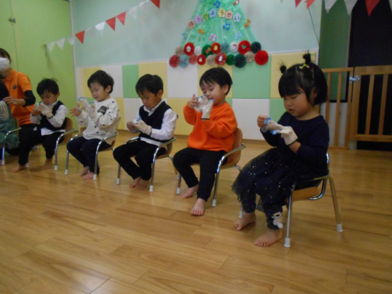 他にもパパやママとの触れ合い遊びをしたり、クリスマス制作をして楽しみました。
