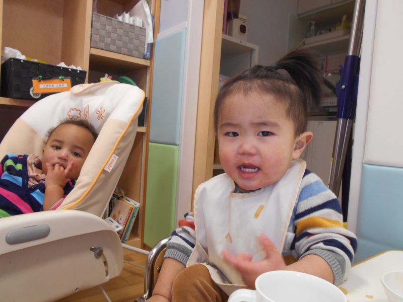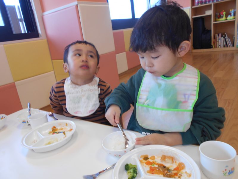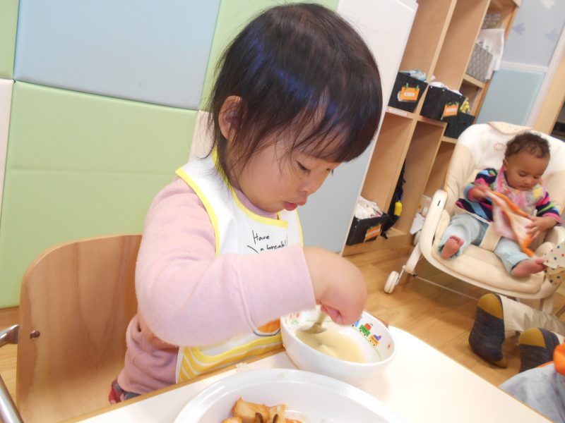 のんびりとお給食タイムを楽しんでいる子、
