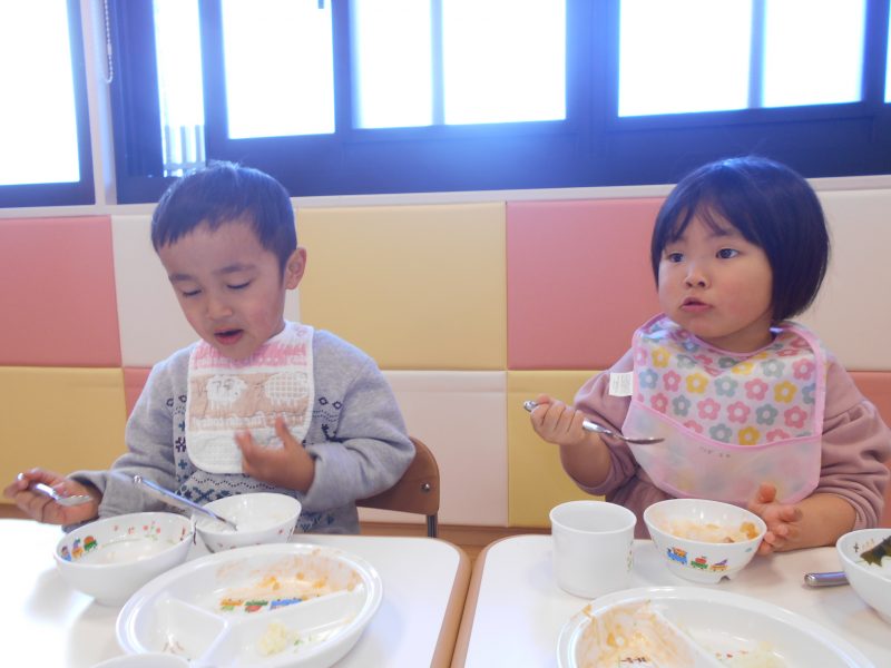 おしゃべりに花が咲いてついつい手が止まってしまう子といったように食事のペースはそれぞれです。