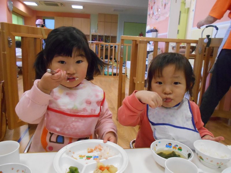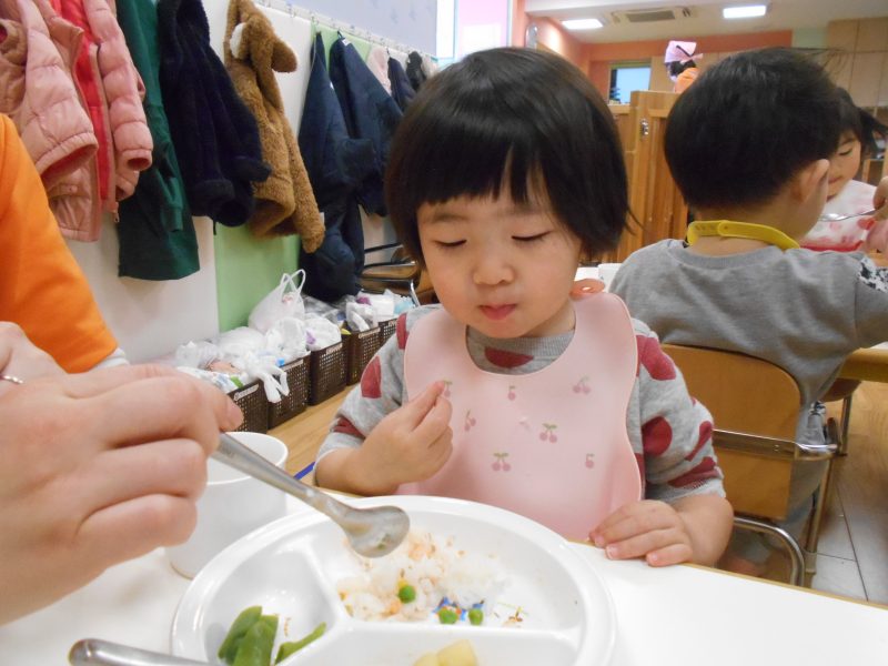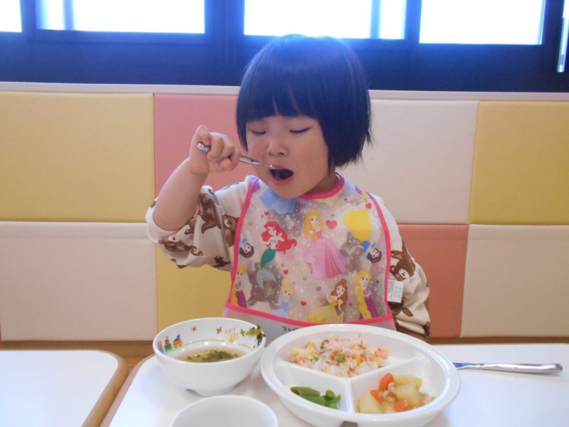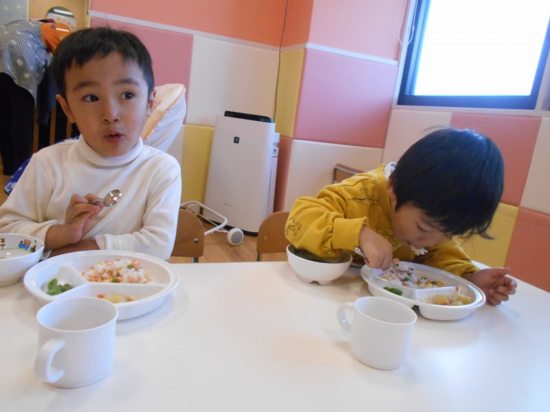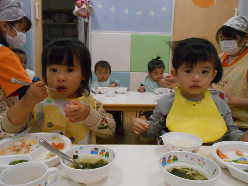 この日はお給食もひなまつり仕様で、鮭のちらし寿司やお吸い物が出ました!