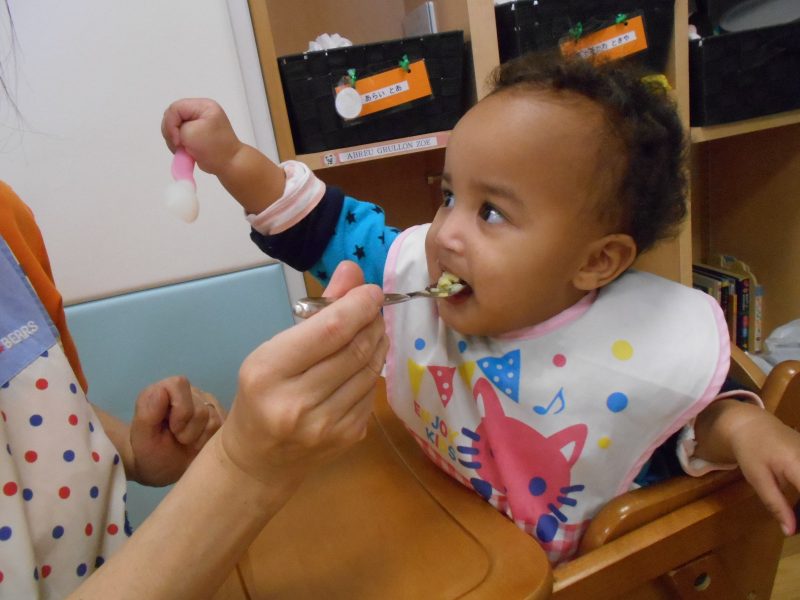 「大きなお口で食べてるのは誰かな~」と言って近づいていくと