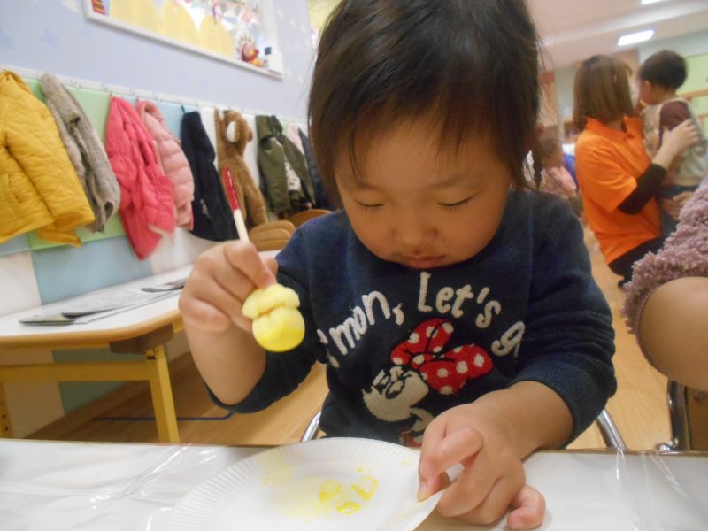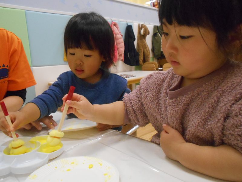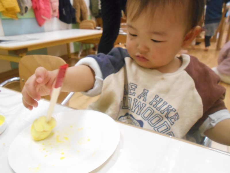 力強くたくさんぽんぽんしている子や優しくぽんぽんしていく子とやり方にも個性が出ておりました!