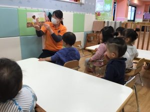 今日は「わっかざり」という絵本の読み聞かせの様子をお伝えします?