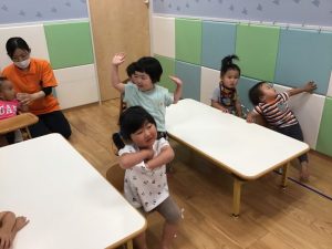 フラッシュカードの後は英語の音楽に合わせて楽しく体を動かしました✨