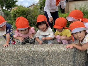 カエルさんいないかなとお外に出るたびに探していたので、とてもうれしそうな子ども達です?