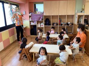 紙芝居が終わると、子ども達の願いごとが書かれた短冊を一つひとつみんなで見ていきました?