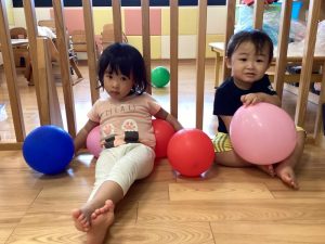 いちご組さん、りんご組さんは風船遊びが大好き??