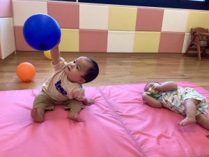 マットの上でも手足を元気に動かしてご機嫌な様子のもも組さんでした?