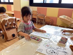 その後は座って塗り絵、お絵描きをして過ごしました?