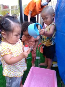 容器の中の水が空になっても保育士に渡して、