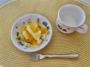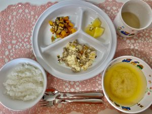 昆布の煮物に入っている昆布は、細かく刻むことで食べやすくなります。いつもとは違ったメニューでもたくさん食べている様子を見ることができて嬉しいです♪