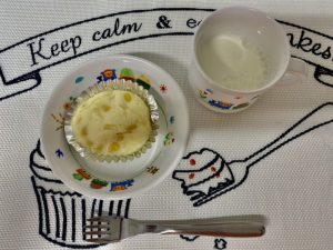 お誕生日会でいつもとは違ったミネストローネが出ましたが、子ども達はトマトで口周りを真っ赤にしていっぱい食べてくれました♪