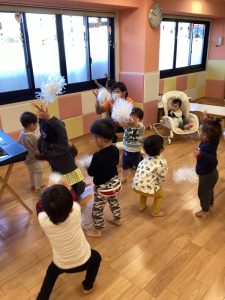 冬のこの時期は「ゆき」の音楽に合わせて雪に見立てたポンポンを振ったり、