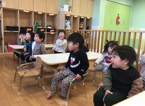 「電車かな?」と首を傾げながらお話しに夢中になる子どもたち🎶
