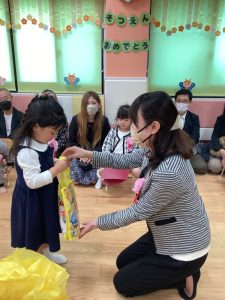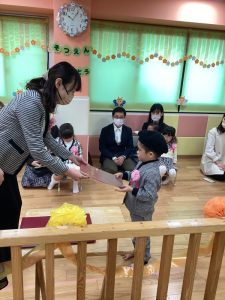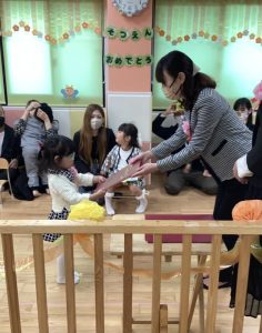 卒園式記念品授与では、代表してお友だちが前に出てプレゼントを受け取ってくれました🎁