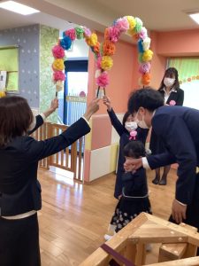 花のアーチをくぐって、「おめでとう」の言葉をたくさんもらった子どもたちでした。