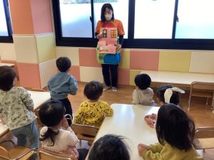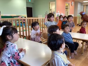 次に、保育士の出し物として「おおかみと7匹のこやぎ」のエプロンシアターを見ました🐐