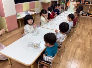 午後のおやつタイムでは、みんなで向かい合う形で机をくっつけておやつをいただきました🧁
