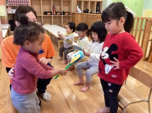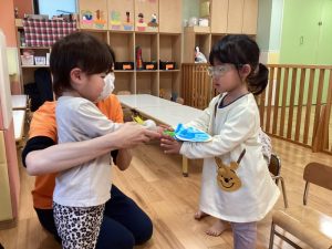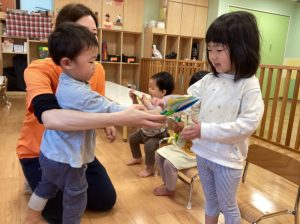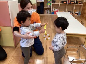 「どうぞ」「ありがとう」のやりとりができるようになり、