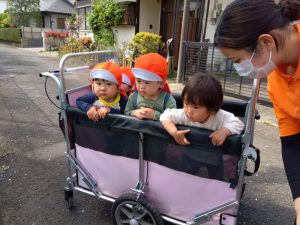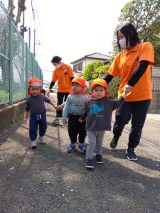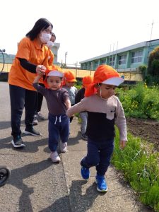 いちご組の新入園児さんも保育士としっかりと手を繋いで歩くことができましたよ🎶