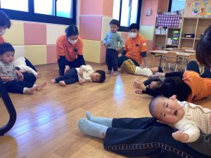 床にコロコロと寝転がる子どもたち💤