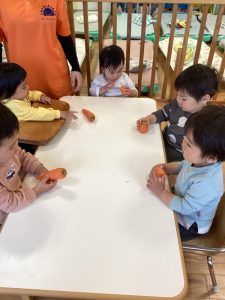 野菜のお名前を知っていると保育士の持っていた野菜にすぐに反応して
