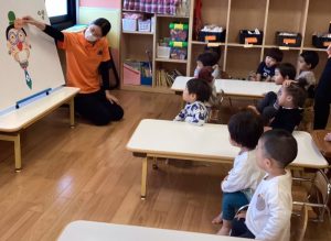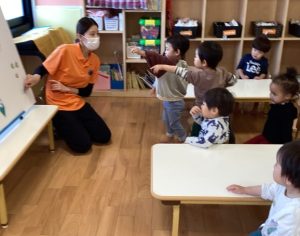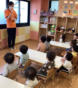 子どもたちも一緒に手遊びをしながら参加しました✨
