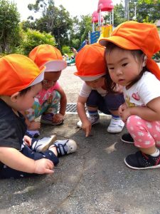 「ミミズだよ」と他のお友だちに知らせてあげたり、