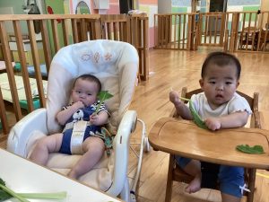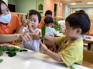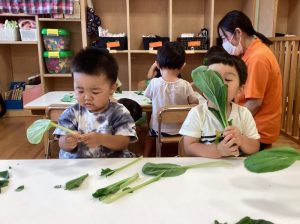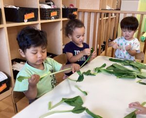 もも組のお友だちも、茎を持って振ってみたり、ちぎってみたりしたよ😊