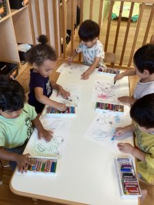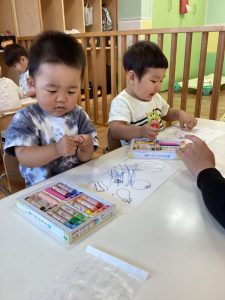 どの色にしようかな〜🎶と楽しく選びながら塗るいちご組さん🍓