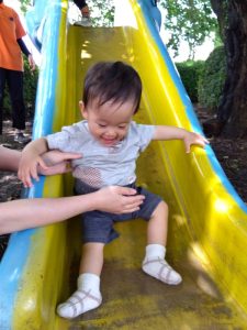 遊具を登って滑り台を滑ったよ🛝