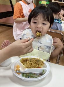 子どもたちはとてもおいしいそうな絵に、思わず「あーん!」「パク!」😋