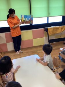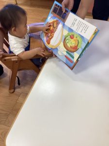 もも組さんも絵本にタッチ!かわいいですね💕
