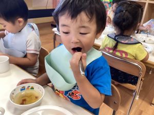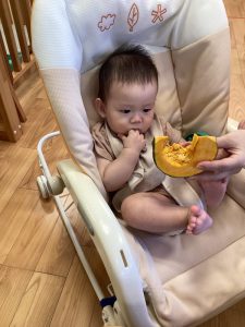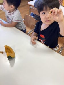 「かぼちゃだ!」「おいしいね!」とぱくぱくと食べている子どもたちでした☺️✨