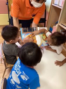 まずは「なつやさいのなつやすみ」という絵本をみんなでみました。