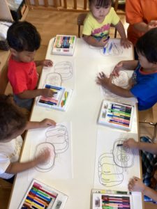 その後はかぼちゃの塗り絵をしました♪