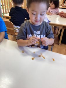 ワタの部分を触ってみたり、タネを取ってみたりみんなたくさん触ることができました👏