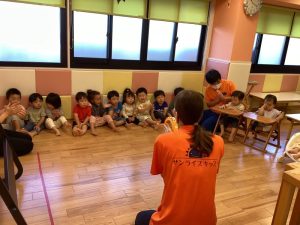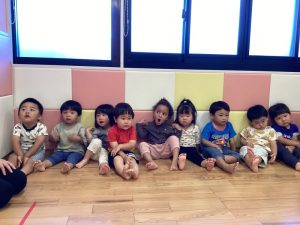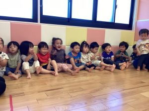 かけ合いを楽しんだら、リトミックの始まりのお歌をうたいます🎶