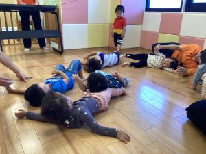 どんぐりころころを弾き始めると床に寝転ぶ子どもたち😪