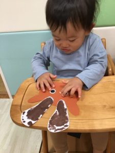 もも組さんは、手形と足型でサンタとトナカイを表現しました🙌
