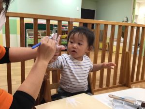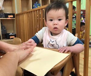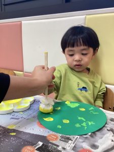 シールを貼れるお友だちは、保育士と一緒に挑戦してみましたよ💪