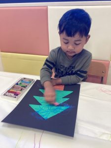 自分で貼ったツリーにクレヨンでお絵描きをしました🖍