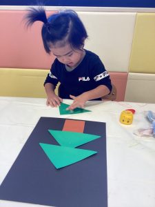 三角に切った画用紙にノリをつけて、向きを考えながら貼ることができました👏