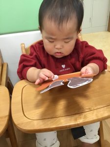 いつもよりも小さなシールに挑戦しましたが、指先を使って器用に貼っていました🙌