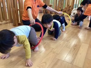 いちご組さんはフープをトンネルにして遊びました⭕️