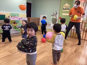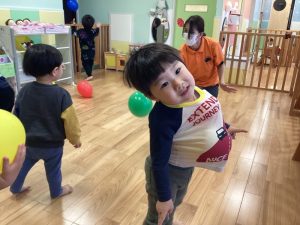 風船遊びでは、お洋服の中に入れて遊ぶのがブームの子どもたち⭐️