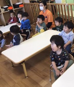 後半になると「はしれー」のパターンもわかって来たようで子どもたちも「はしれー」と言っている姿がとても印象的でした🎶
