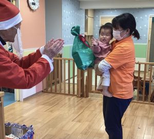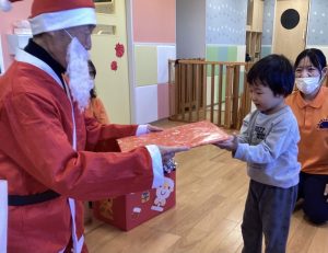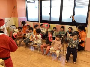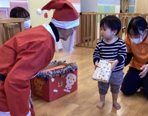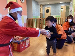りんご組さんも笑顔でサンタさんからプレゼントをもらいました🎁